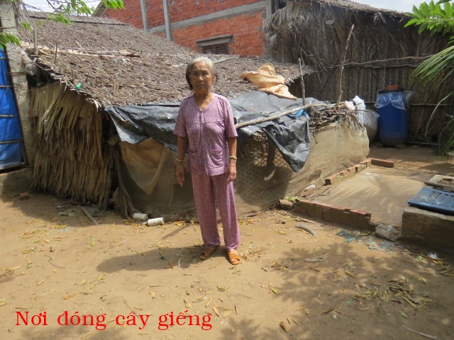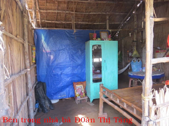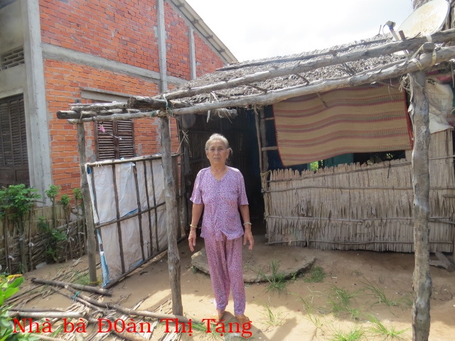 Bà Đoàn Thị Tặng 77t ở Hồ Cỏ xã Thạnh Hải huyện Thạnh Phú. Bà có 1 con trai nhưng vì nghèo nên theo quê vợ, thỉnh thoảng gửi cho bà một hai chục để xài và mua gạo. Ngoài số tiền đó, hang ngày thì nhờ bà con chòm xóm ai cho gì thì ăn nấy công them mỗi tháng bà lảnh được 180 nghin đồng tiên người già neo đơn ( 8,5 đô). Nhà không có cây giếng nên hang ngày phải xin của hang xóm xách về xài. Hiện tại căn nhà cũng bị dột nát.