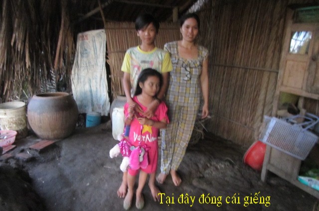 Mrs Ho Thi Tho, age 34 of An Nhon village, An Dinh hamlet, Thanh Phu district, Ben Tre province is living with her two children: a boy in 9th grade and a girl in kindergarten. Her husband left her and the children. The family does not have a well so she has to carry water from the river for their own use.