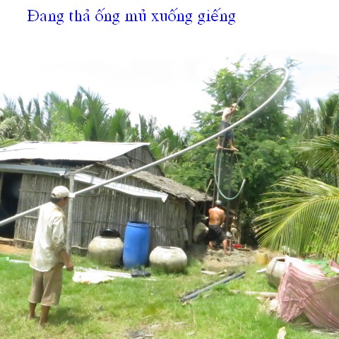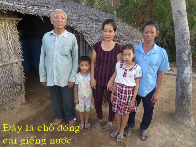 Mr. Le Van Kieu, age 66 resides with his daughter, Ms. Le Thi Ha, age 44, and his son-in-law Nguyen Van Kien, age 48 at Thanh Tan hamlet, Binh Thanh village, Thanh Phu district, Ben Tre province. His two grandchildren are in grade 5 and grade 3. Because they do not have a well, they have to use water from the river.