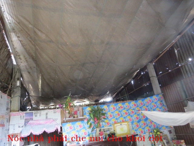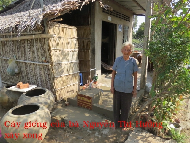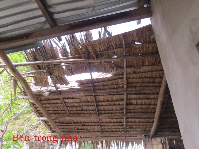Ms. Nguyen Thi Huong, age 87 of An Thuan village, Thanh Phu district lives by herself. She collects and sells recycled bottles to make enough money for food. She does not have a well and has to carry water from her neighbor for her own use. Her house was given ny the government 7 years ago, the roof is lrotten and she has to use plastic to cover it to avoid leaks.