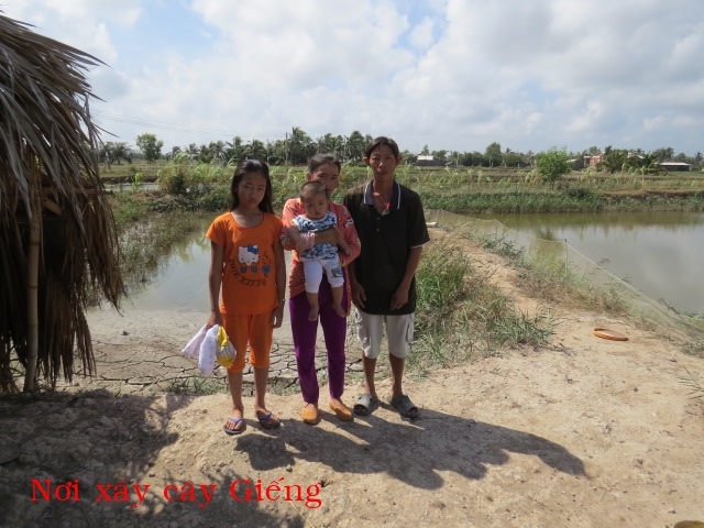 Mr. Pham Van Than, age 35, of An Hoi A hamlet, An Thuan village, Thanh Phu district, Ben Tre province, is living with his wife and their two children. He works as a day labor to support the family. They cannot afford to have a well and have to carry water from faraway for their own use.