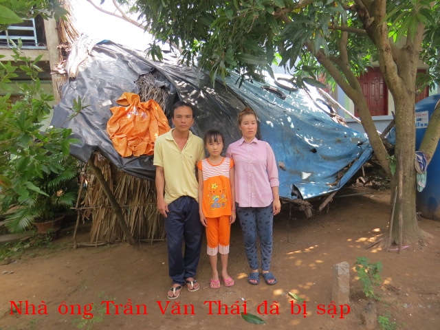 Trần Văn Thái ở Hồ Cỏ xã Thạnh Hải huyện Thạnh Phú. Gia đình có 3 người: vợ và 1 con. Hàng ngày ông Thái đi nhồ củ sắn, cắt dưa hấu cuốc khoai thuê nhưng cuộc sống chỉ đủ mua gạo ăn hàng ngày. Căn nhà bị sập nay hơn 10 ngày nhưng gia đình ban đêm vẩn ở ngủ ở đây vì không có chổ nào khác. Họ đang xin được giúp đở để xây lại nhà và xin 1 cái giếng tình thương vì phải gánh nước rất xa.