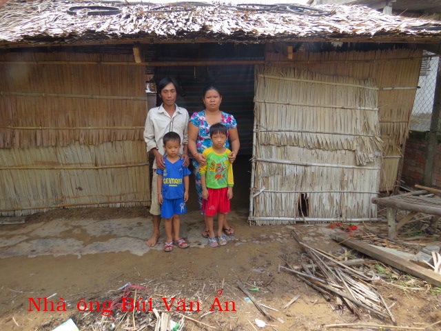 Bùi Văn Ẩn 33t ở ấp An Hội xã An Thuận huyện Thạnh Phú. Gia đình có 4 người: vợ và 2 con. Hàng ngày cả 3 vợ chồng ai thuê gì làm nấy, căn nhà bị sập nay hơn 2 tuần đang sửa lại. Nhà không có giếng, hang ngày phải đi xin của hang xom về xài.