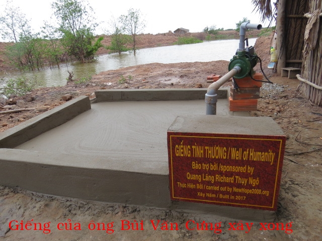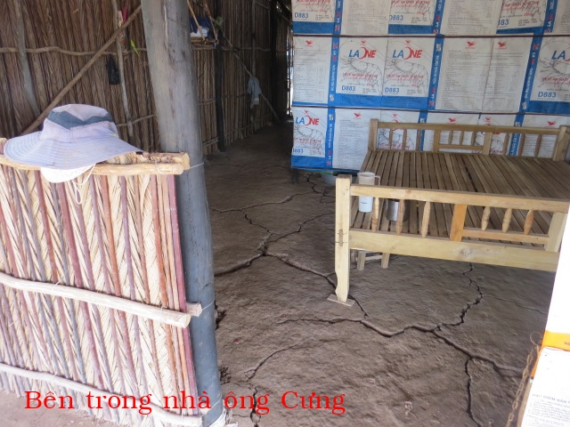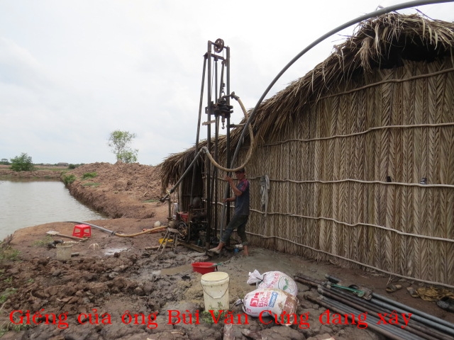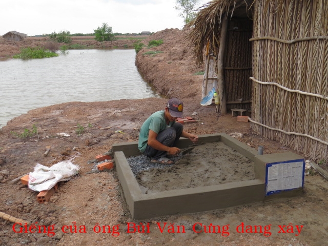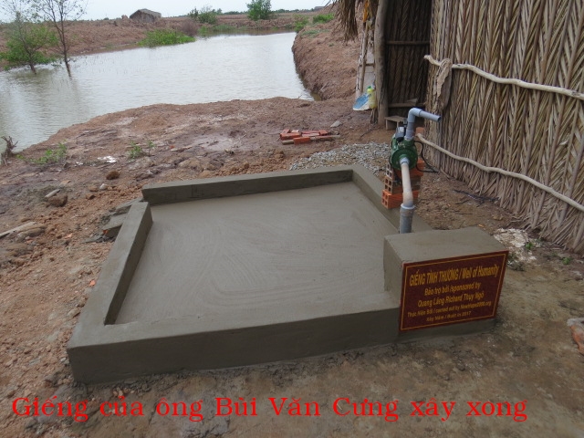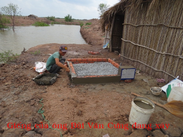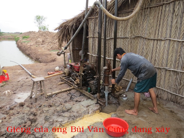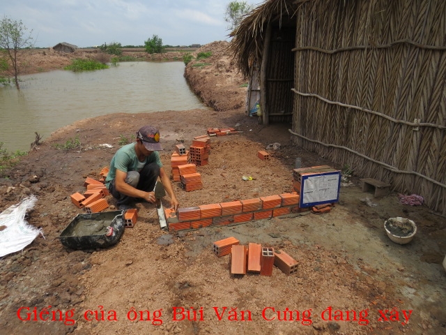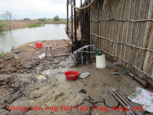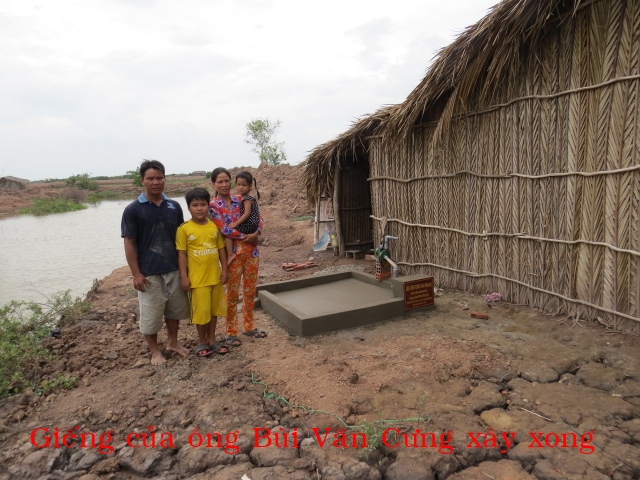 Bui Van Cung, 32 years old, resides at Voi Duoc Hamlet, Thanh Hai Village, Thanh Phu District. He and his wife have 2 children. Every day he works for a boat owner fish netting out in the ocean; his wife works whatever job is available. They make only enough to buy rice and support their child schooling. They don’t have a well and have to buy water.