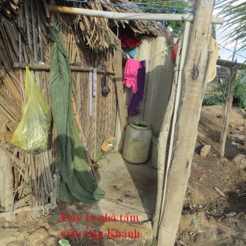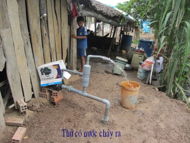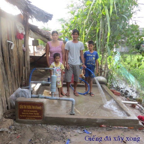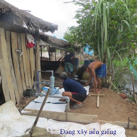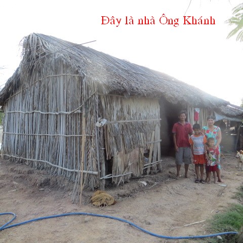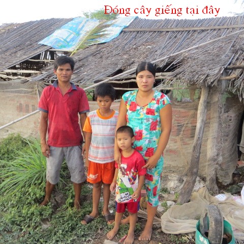 Bui Van Khanh, 34 years old, and wife Nguyen Thi Cam Tu, 34 years old, reside in Thanh Tan Hamlet, Binh Thanh Village, Thanh Phu District, Ben Tre Providence. They have 2 children, Bui Thanh Lam, 8 years old in 3rd grade, and Bui Lam Truong is too small. They don’t have permanent jobs and live by catching on crabs and clams. They don’t have money to build a well and have to use salted water from the river.