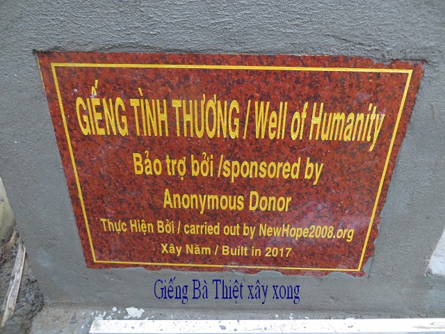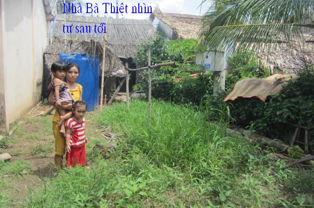 Bà Huỳnh Thị Thiệt, 30 tuổi. Hiện ợ tại số nhà 21/1 ấp Thạnh Quí A, xã Bình Thạnh, huyện Thạnh Phú, tỉnh Bến Tre. Chồng là ông Phan Trường Giang, 33 tuổi. Họ có 2 con nhỏ 4 tuổi và 2 tuổi chưa đi học. Ông Giang đi làm thợ phụ hồ mỗi ngày được 150.000 đồng (6.7 đô). Bà Thiệt ở nhà giữ 2 con nhỏ, không có đi làm . Nhà họ rất cần một cái giếng nhưng không có tiền đóng vì thu nhập còn chưa đủ sống.