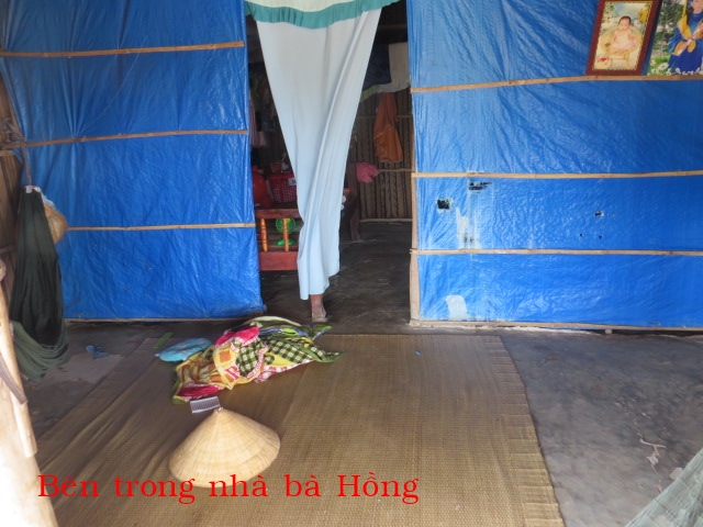 Lê Thị Hồng, 28 tuổi, ở Voi Đước, xã Thạnh Hải, huyện Thạnh Phú. Có chồng và 2 con. Chồng đi cào thuê ở biển cào thêu cho chủ không có nhà. Nhà không có ruộng đất. Bà Hồng ở nhà ai thuê gì làm nấy. Nhà không có cây nước phải mua từng xe chở về xài mỗi ngày 1 USD tiền nước..