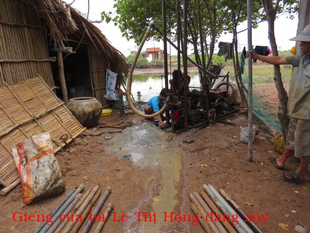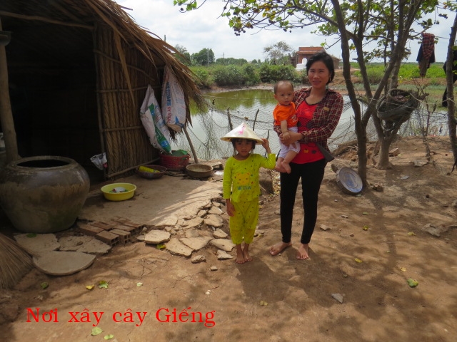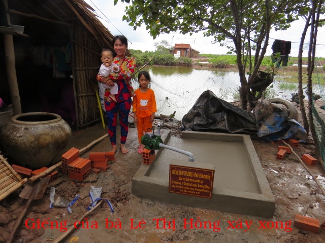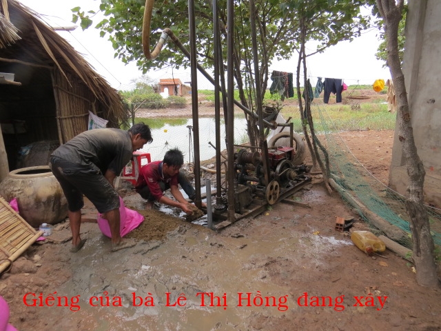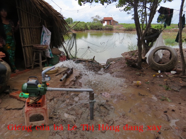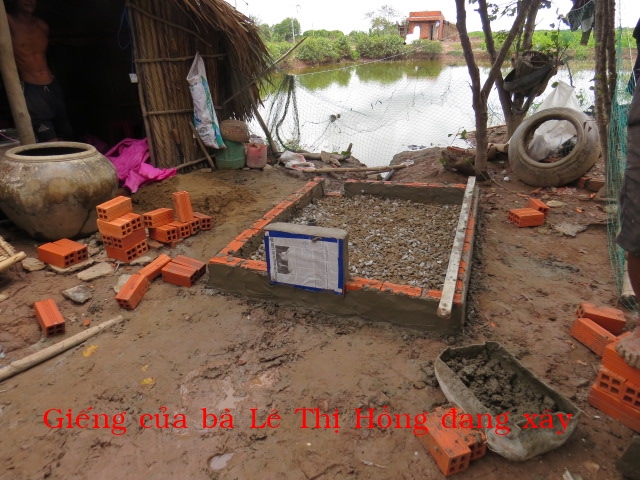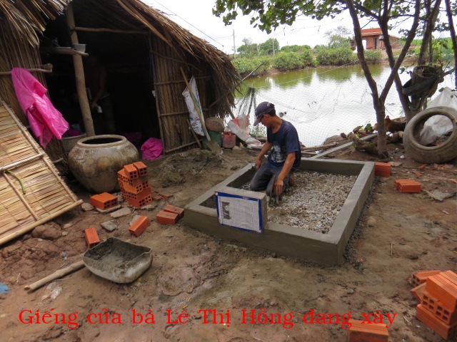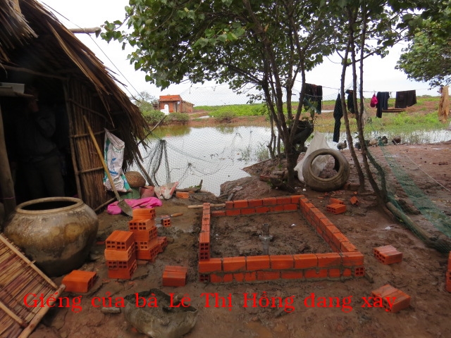 Le Thi Hong, age 28, of Voi Duoc, Thanh Hai Village, Thanh Phu District, is living with her husband and their 2 children. Her husband works for people at the seaside away from home. She does odd jobs. They have no land and no well. The water store is far way. The cost of water and transportation is about 1 US dollar a day, and for them it is very overwhelming.