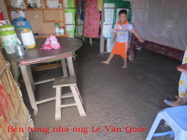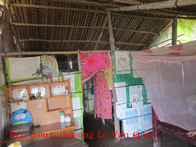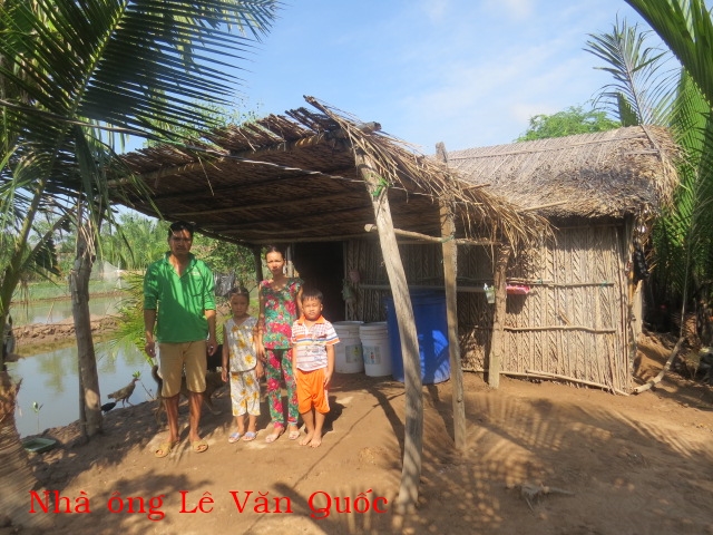 Lê Văn Quốc 33t ở Giồng Trôm xã An Qui huyện Thạnh Phú. Gia đình có 4 người: vợ và 2 con, vợ đang mang bầu 6 tháng. Không có ruộng đất, hàng ngày ông Quốc ai thuê gì thì làm nấy. Nhà không có Giếng phải xin của bà con ở xóm về xài hàng ngày.