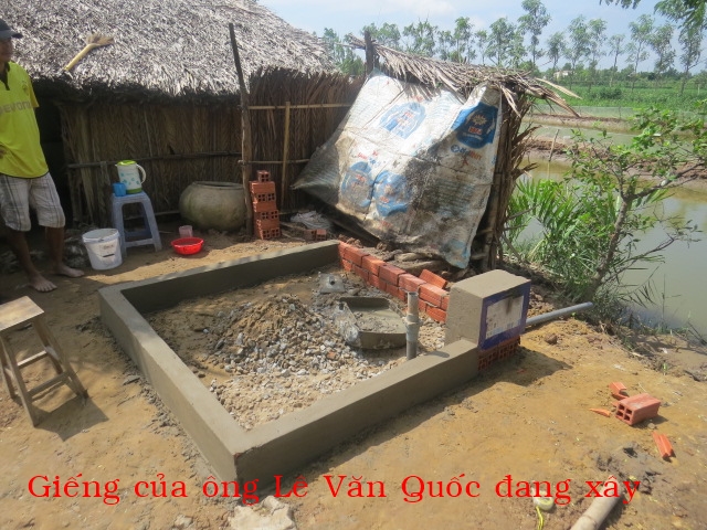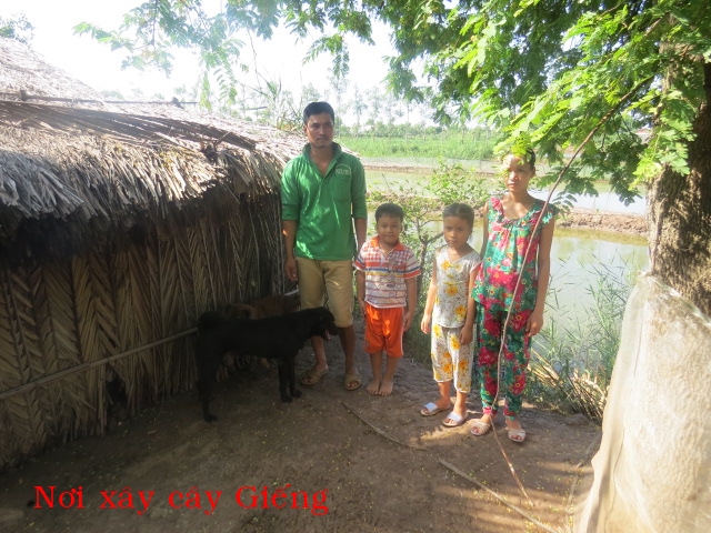 Le Van Quoc, 33 years old, resides in Giong Trom Hamlet, An Qui Village, Thanh Phu District. He and his wife have 2 children and currently 6 months pregnant. They don’t own land and working on whatever job is available. They don’t have a well and have to get water from their neighbor’s well.