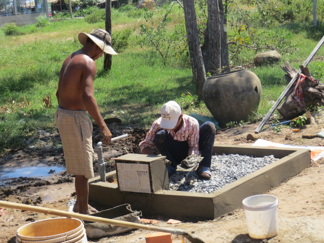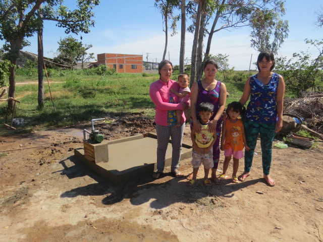There are 12 people in these 3 households. The husbands work at the seaside away from home. The wives do odd jobs. They don't currently have a well, and have to buy water for usage and since the water store is not local, transportation cost adds up. It costs each family around 1 us dollar for daily water expense. They only make a few dollars a day.