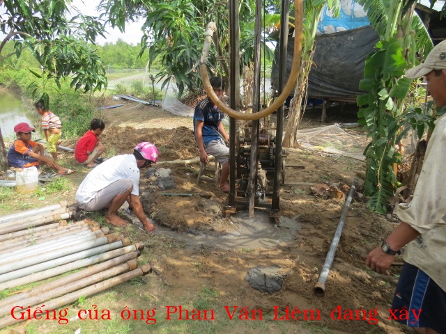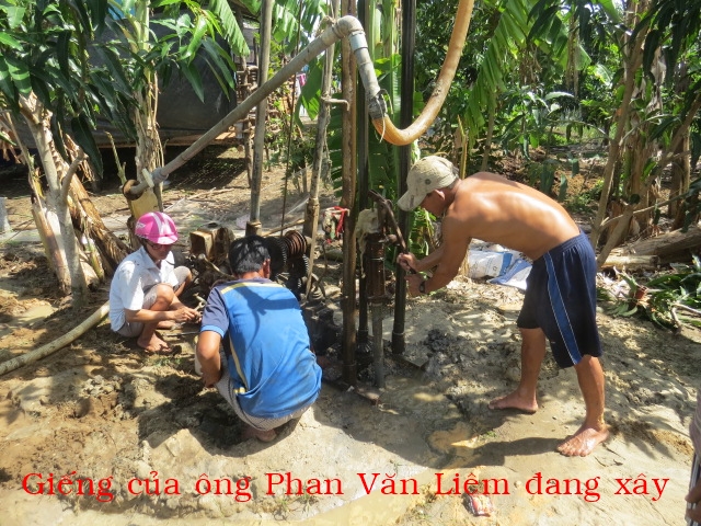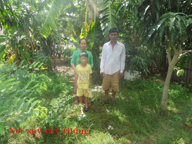 Pham Van Liem, 46 years old, resides in Con Dai Hamlet, Thanh Phong Village, Thanh Phu District. He and his wife have 1 daughter and grandchild. Currently, their daughter is working in Saigon. They don’t own land and working daily on miscellaneous jobs. They don’t have a well and have to get water from their neighbor’s well.