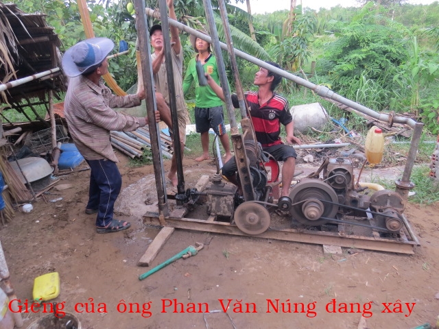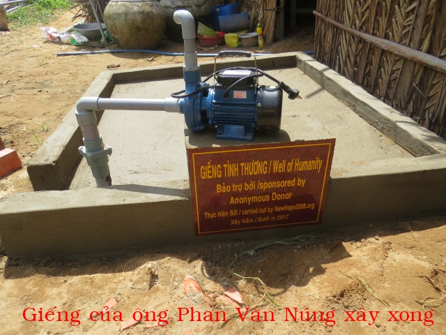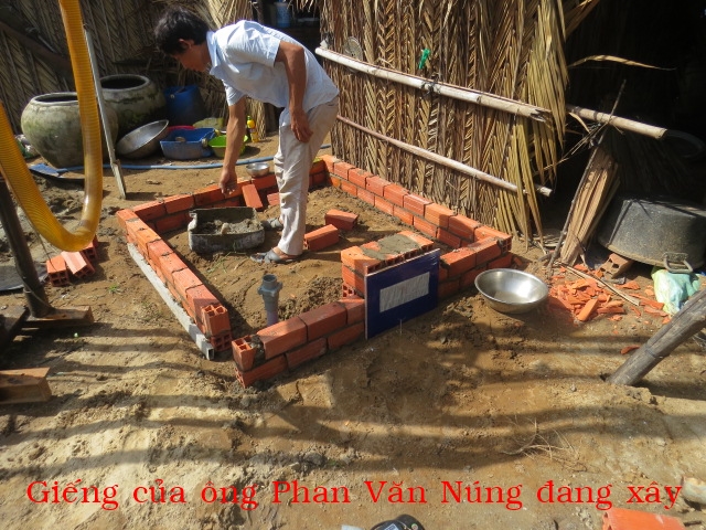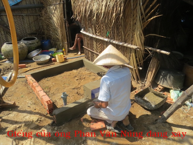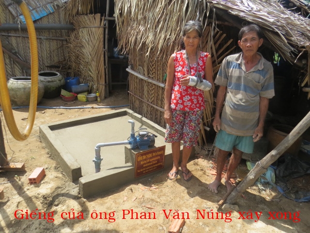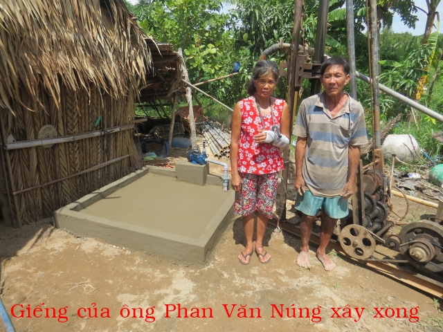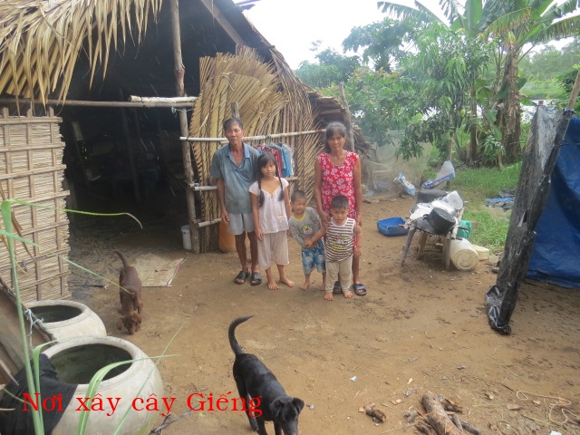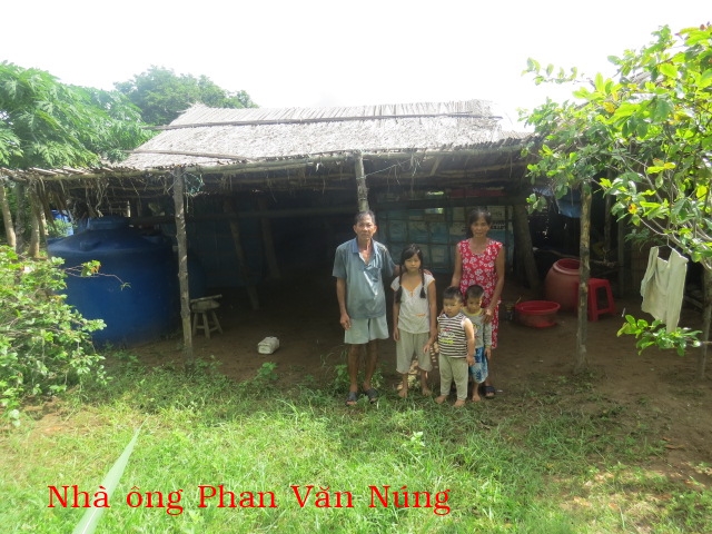 Phan Van Nung resides in Con Dai Hamlet, Thanh Phong Village, Thanh Phu District. He and his wife have 2 daughters and 3 grandchildren; one son in law passed away and the other left his family. Currently, the 2 girls are working in Saigon and send them money to care for their children. They stay home caring for their grandchildren and work whatever job is available. They don’t own land and have no well; they have to get water from their neighbor’s well.