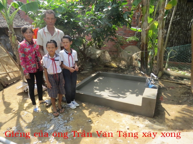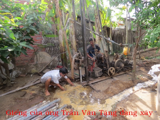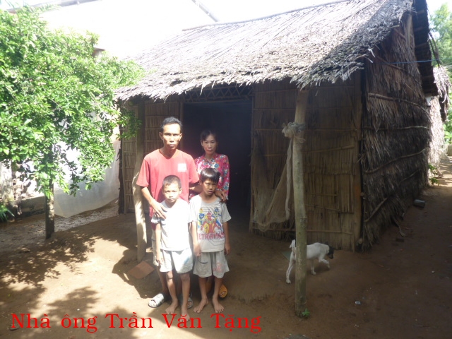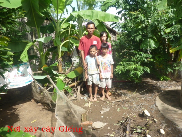 Tran Van Tang, 41 years old, resides in Ben Trai Hamlet, An Thuan Village, Thanh Phu District. He and his wife have 2 children. They don’t own land and work whatever job is available. They have to go to their neighbor to get water because they don’t have a water well at their place.