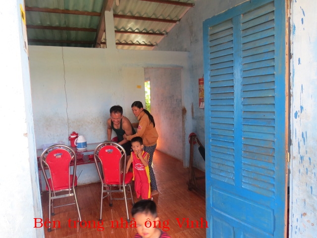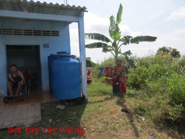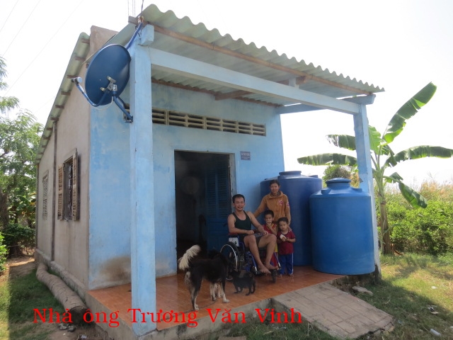 Truong Van Vinh, age 29, of Voi Duoc, Thanh Hai Village, Thanh Phu District is living with his wife and their 2 children. He got a stroke and was paralyzed on half side of his body 3 years ago. His wife is selling lottery tickets to feed the family. Their house donated last year by a group of donors doesn't have a well and they have to get water from their neighbor for their own use.