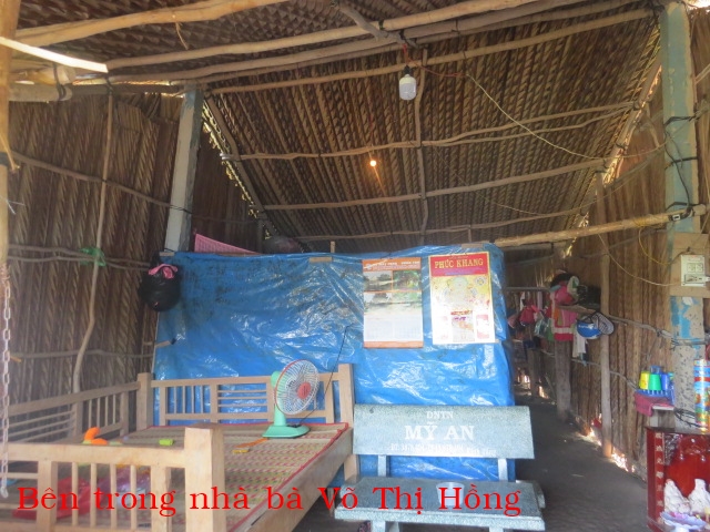 Vo Thi Hong, 38 years old, resides in Ca Cat Hamlet, An Dien Villnage, Thanh Phu District. She and her husband have 2 children. Her husband works for a boat owner and comes home every few months. She works whatever job is available. They don’t own land and well and have to use water from the rivers around home that have been contaminated with a lot of salted.