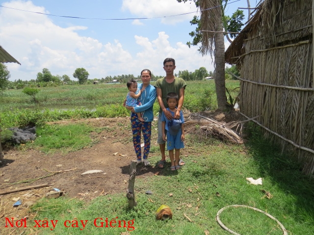 Nguyen Van Nghiem, 32 years old, resides at 45/2, 6 hamlet, An Thuan village, Thanh Phu district, Ben Tre providence. His wife and him have 2 children. Every day, they work whatever is available and make enough to live on day to day. Their place has no farming land and does not have a well; they rely on their neighbor’s water for usage but limited.