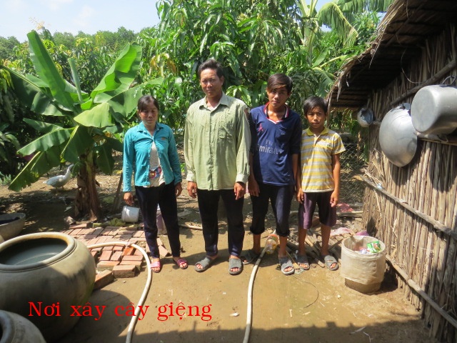Nguyễn Van Thuan, 41 years old, resides at 92/1, Con Cao hamlet, Thanh Phong village, Thanh Phu district, Ben Tre providence. He and his wife have 2 children. They work whatever job is available and make only enough to buy rice. They don’t have a well and rely on their neighbor for water usage.