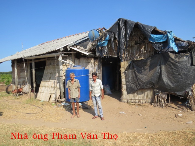 Ông Phạm Văn Thọ 79t, số nhà 66/1 Cồn Lớn xã Thạnh Phong huyện Thạnh Phú tỉnh Bến Tre. Gia đình ông có 3 người: ông, bà và 1 đứa con trai bị tâm thần. Ông bị viêm khớp nên đi lại rất khó khăn, đứa con trai bị tâm thần nên chỉ làm công việc nhẹ,nhà không có ruộng đất, hàng ngày ở nhà chỉ có bà đi bắt ốc ở ngoài rừng đem về bán nuôi cả gia đình. Nhà không có cây giếng phải xin của hàng xóm về xài