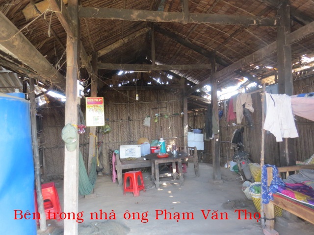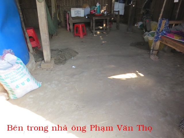 Pham Van Tho, 79 years old, resides at 66/1 Con Lon hamlet, Thanh Phong village, Thanh Phu district, Ben Tre providence. His parents and his son are living with him. He has arthritis which limits his mobility. His son is mentally ill and can only work on light duty. They don’t own land. Every day they go into the forest to catch snails to sell to buy food. They don’t have a well and rely on neighbor for water usage