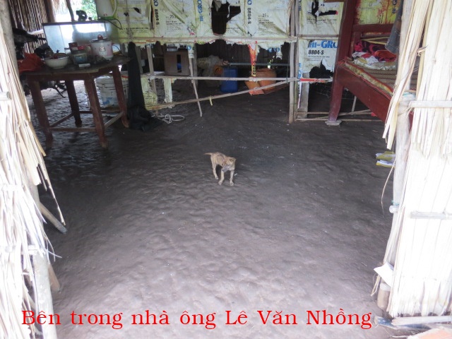 Le Van Nhong, 63 years old, resides in 273/1, Giang Ha hamlet, An Dien village, Thanh Phu district, Ben Tre providence. He lives alone and works whatever job is available as his health permitted. His place has no well and relies mostly on rain water. If not, then he uses salt water to wash/clean with some fresh water.