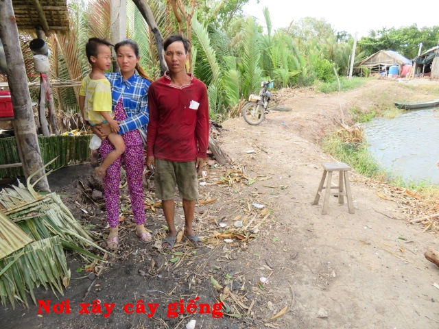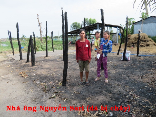Nguyen Sa Ri, 37 years old, resides in An Hoa hamlet, My An village, Thanh Phu district, Ben Tre providence. He and his wife have 1 child. Their place has no space for farming and work whatever job is available. Few days ago, they lost their house due to electrical fire and only have clothing on their body. The place has no well and in need for water usage.