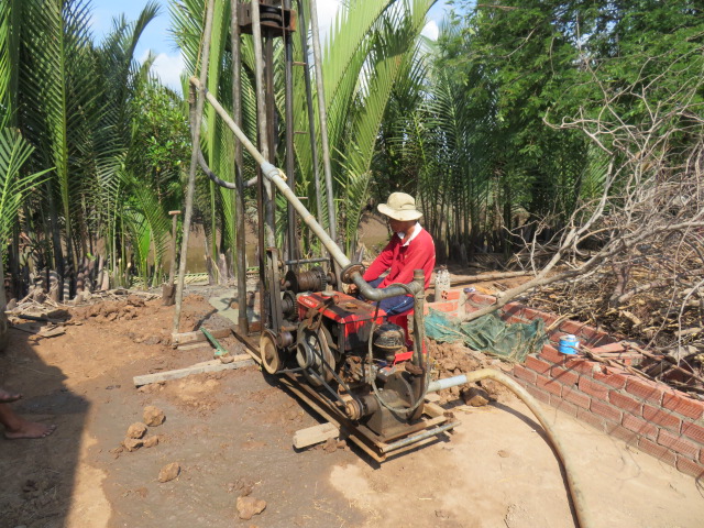 Mr. Nguyen Van Ngoan, 41 years old, resides in An Dien hamlet, An Dien commune, Thanh Phu district, Ben Tre province. His family has five people: himself, his wife and their three children. The children all go to school. Every day he and his wife do whatever jobs they could find, but they only make enough money to buy rice. The house doesn't have a well, so they have to ask the neighbors to use it. It's very difficult, so they need a fresh water well.