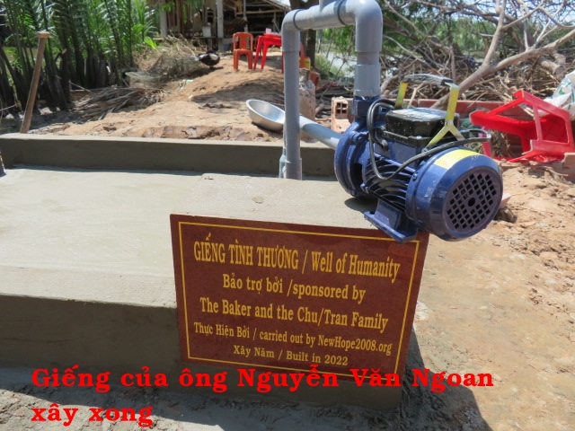 Ông Nguyễn Văn Ngoan 41t ở ấp An Điền xã An Điền huyện Thạnh Phú tỉnh Bến Tre. Gia đỉnh có 5 người: vợ chồng và 3 con. 3 đứa con đều đi hoc, hàng ngày cả 2 vợ chồng ai thuê gì thì làm nấy nhưng chỉ đủ mua gạo. Nhà không có cây giếng phải xin của hàng xóm về xài, rất khó khăn nên cần cây giếng nước ngọt.