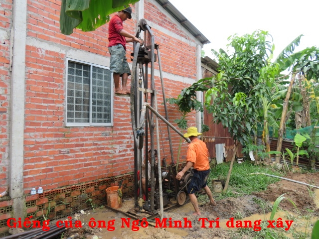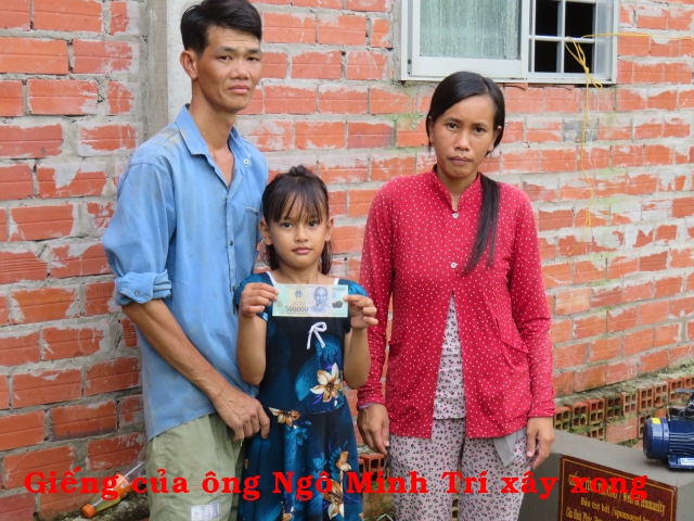 Mr. Ngo Minh Tri, 33 years old, lives in Cau Tre, Binh Thanh Commune, Thanh Phu District, Ben Tre Province. There are 3 people in his family: himself, his wife and their daughter. Every day he and wife hire work whatever odd jobs they could find. They do not own any land; the house does not have fresh water well, so it is very necessary for them to have one for their daily lives.