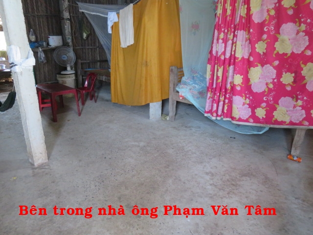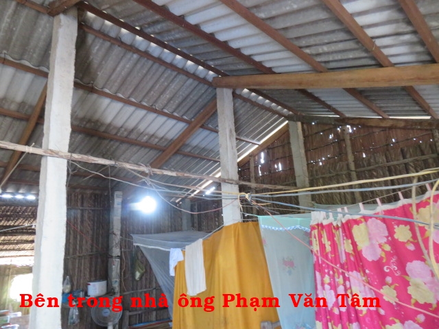 Ông Phạm Văn Tâm, 55t, nhà ở Cồn Mít, xã Thạnh Phong, huyện Thạnh Phú, tỉnh Bến Tre. Ông có 1 con gái nay 15t đi phụ bán quán không nhà, hàng ngày ai thuê gì thì làm nấy. Nhà không có cây giếng nước ngọt phải xin của hàng xóm về xài.