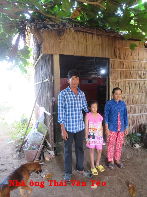Ông Thái Văn Tèo 42t, nhà ở Cồn Bửng, xã Thạnh Hải, huyện Thạnh Phú, tỉnh Bến Tre. Gia đình có 5 người: vợ chồng và 3 con, 2 con lớn đi học không có nhà. Nhà không có ruộng đất, hàng ngày đi mò cua bắt ốc ngoài biển về để nuôi gia đình. Nhà không có cây giếng nước ngọt phải xin của hàng xóm về xài nên rất cần.