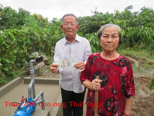Ông Nguyễn Thái Ngọc, 79t, nhà ở Cồn Lớn, xã Thạnh Phong, tỉnh Vĩnh Long. Ông, bà không con. Nhà không có cây giếng nước ngọt, hàng ngày phải xin của hàng xóm về xài nên rất cần..