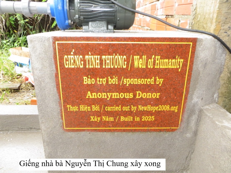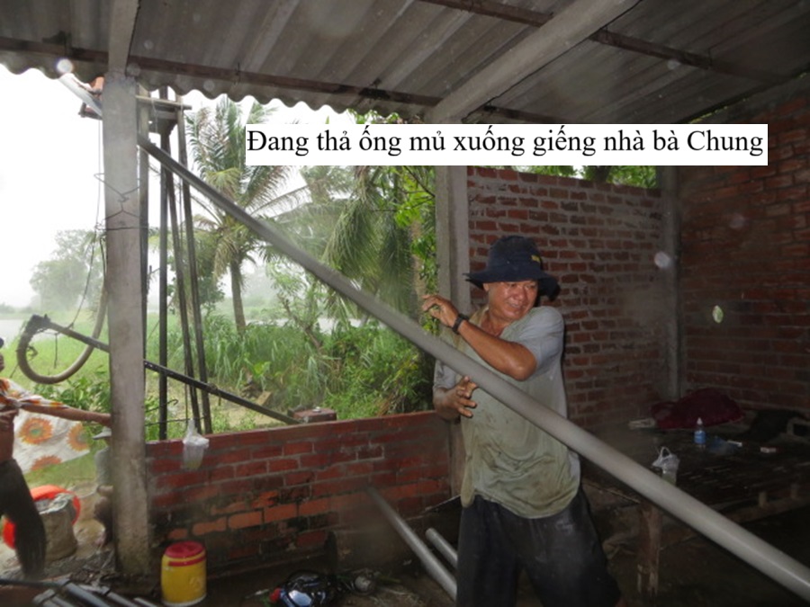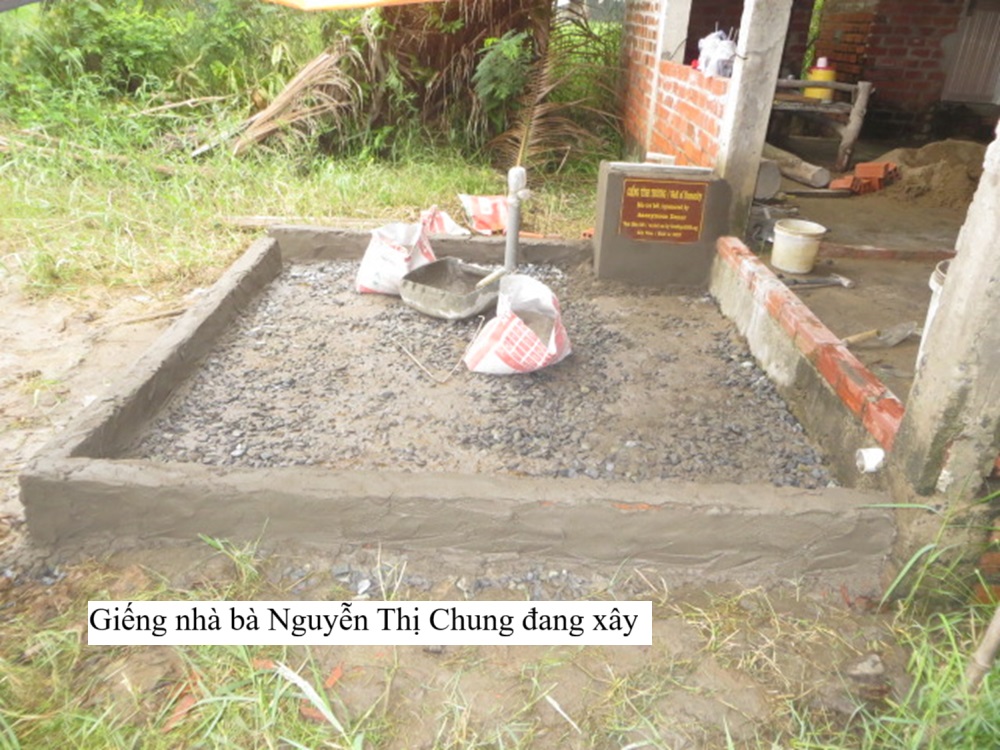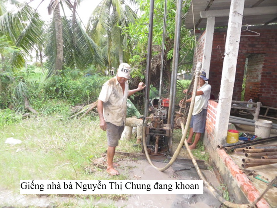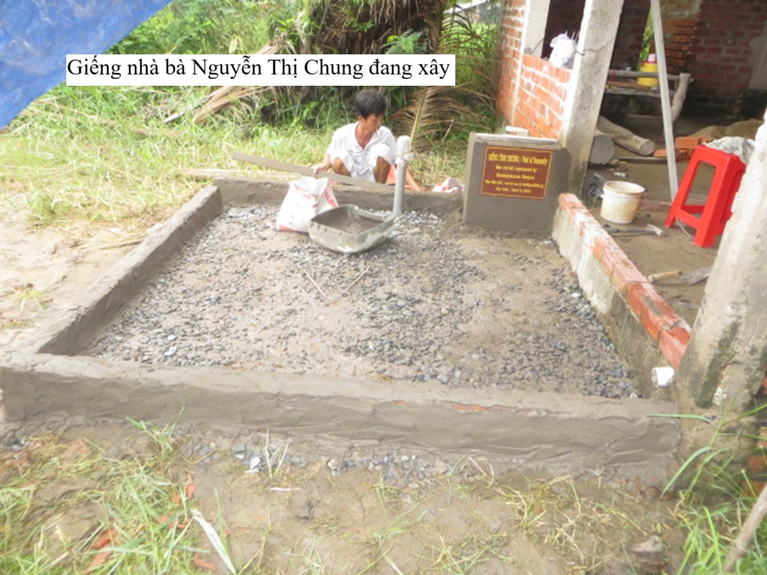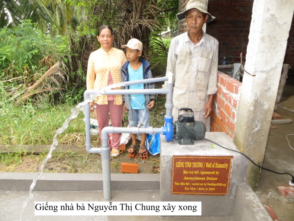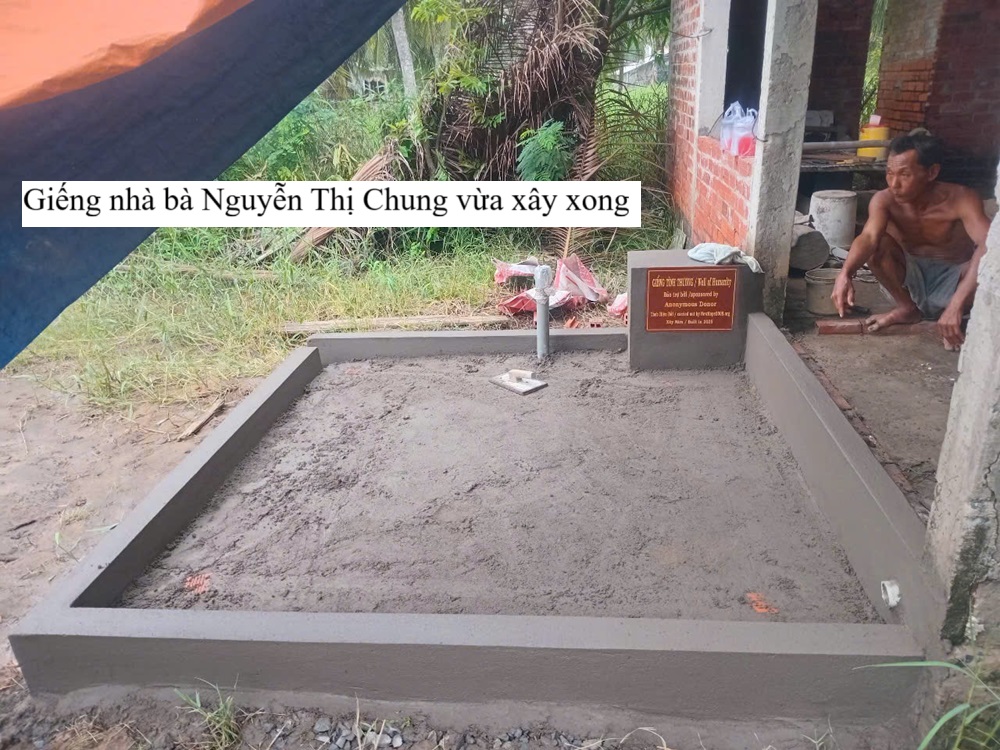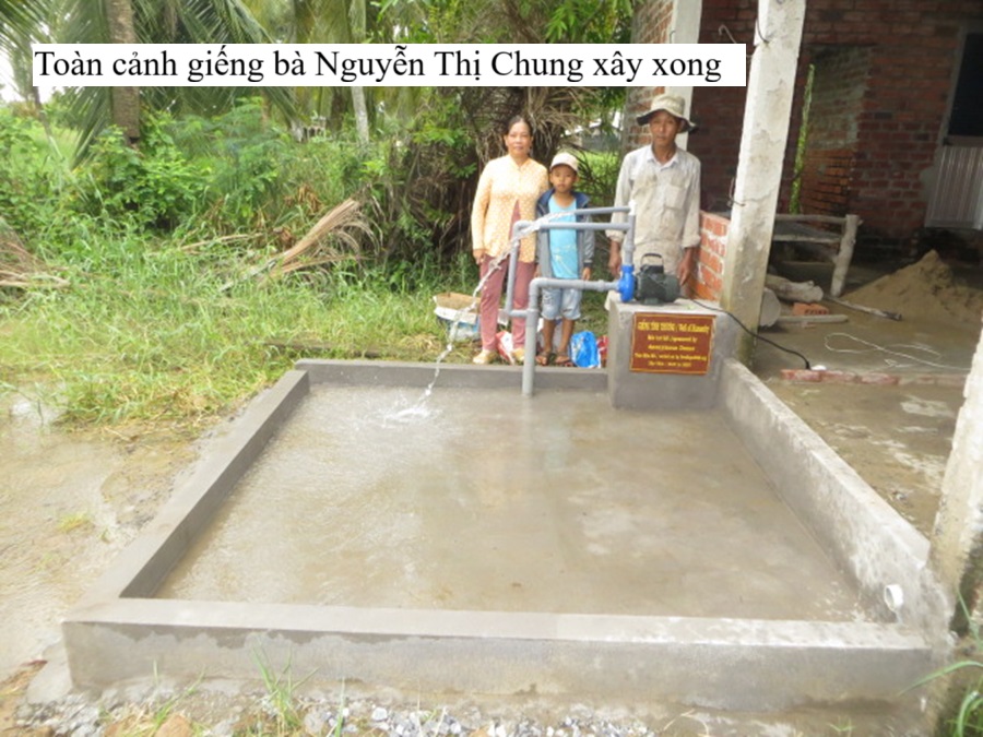 Mrs. Nguyễn Thị Chung, 54 years old. Her husband is Mr. Nguyễn Văn Nuôi, 57 years old. They have a son named Nguyễn Thanh Tú, 10 years old, currently in 5th grade. Mr. Nuôi has diabetes and high blood pressure and must take medication for life. Mrs. Chung has an ovarian tumor and is also undergoing treatment. She has a younger sister named Nguyễn Bích Thủy, 52 years old, who is living with them. The whole family is currently residing in An Ninh hamlet, An Thuận commune, Thạnh Phú district, Bến Tre province (formerly), now part of An Qui commune, Vĩnh Long province. Their house does not have a well for water.