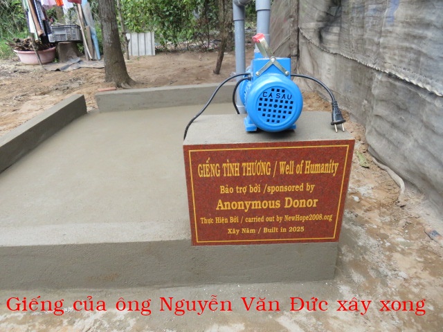 Ông Nguyễn Văn Đức, 48t, nhà ở Cồn Lớn, xã Thạnh Phong, tỉnh Vĩnh Long. Gia đình có 3 người: vợ chồng và 1 con. Nhà không có ruộng đất, căn nhà vừa được vị ân nhân mới cho tu sửa lại. Hàng ngày cả 2 vợ chồng ai thuê gì thì làm nấy, nhà không có cây giếng nước ngọt phải xin của hàng xóm về xài nên rất cần.