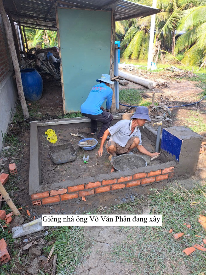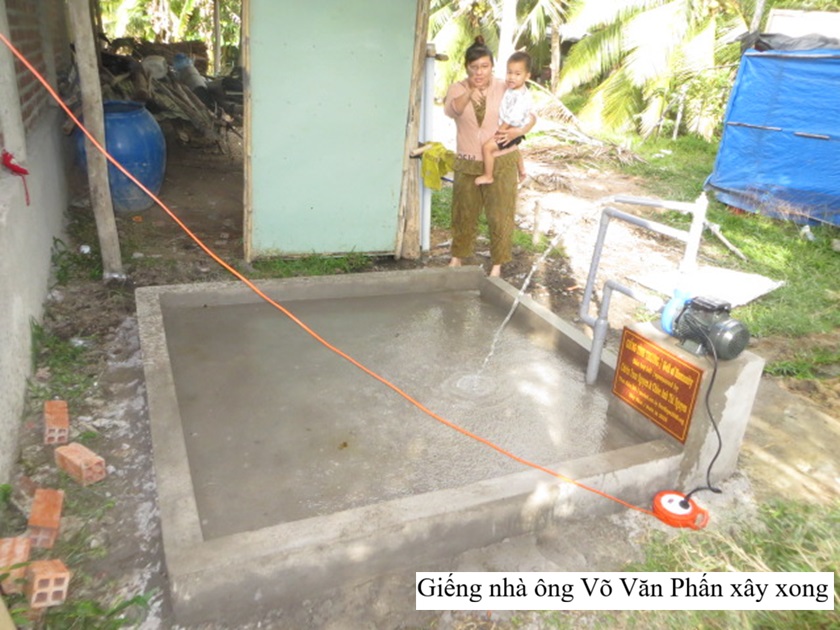 Võ Văn Phấn, 38 years old, and his wife Nguyễn Thị Sen, 33 years old, have one child, Võ Thanh Thuý, 2 years old. Mr. Phấn works at an ice factory, earning 4,000,000 VND per month. His wife stays home making handicrafts from water hyacinth for hire, earning 80,000 VND per day. Their income only covers daily living costs, so they cannot afford to build a water well and must rely on their neighbors for water. They currently live at 38/1, Thạnh An Hamlet, Bình Thạnh Commune, Thạnh Phú District, Bến Tre Province, now part of Thạnh Phú Commune, Vĩnh Long Province.